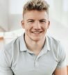 A multi-story educational institution is surrounded by a grassy field. Several people wearing uniforms are gathered in front of the building, some walking across the lawn. The sky is partly cloudy, and there is signage on the building indicating a school name.